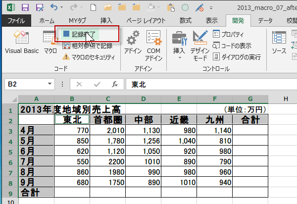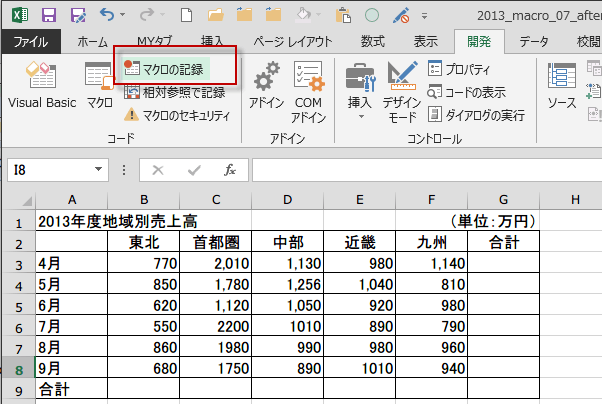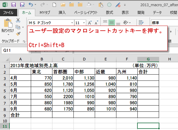 (サンプルファイルは、こちらから 2013マクロ講座7回サンプルデータ)