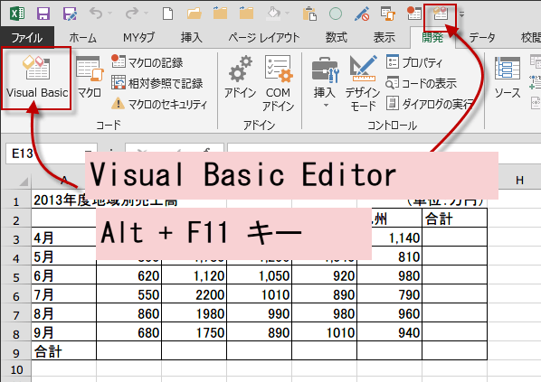 Visual Basic Editorをショートカットキーから表示する