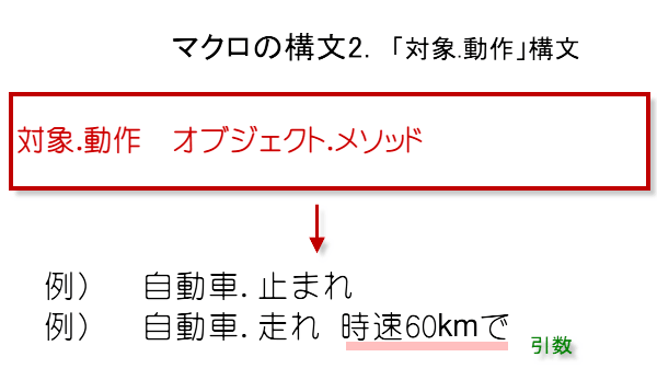 マクロの構文の2つ目が、メソッドを使った「対象.動作」構文です。