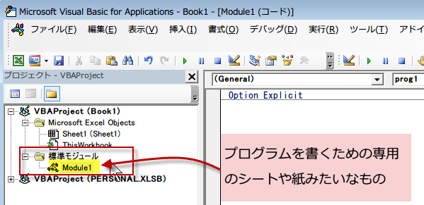 モジュールはVBEでプログラムを書くための専用の紙みたいなものです。