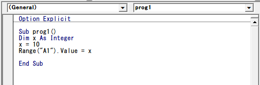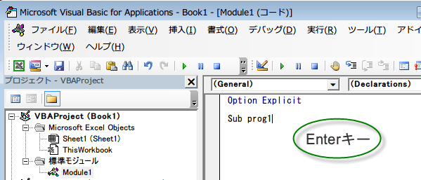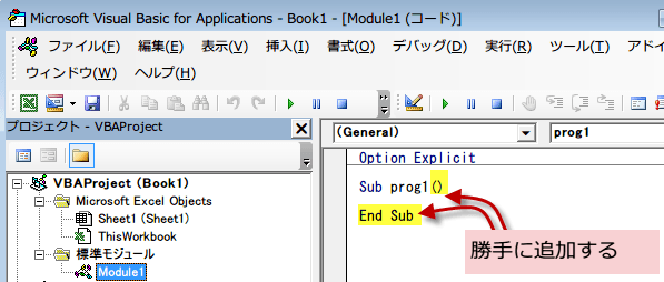 Sub prog1と書いてEnterキーを押します。