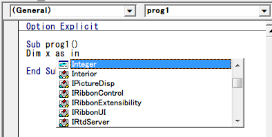 Dim x as Inまで書くと、候補が現れるので、選択します。
