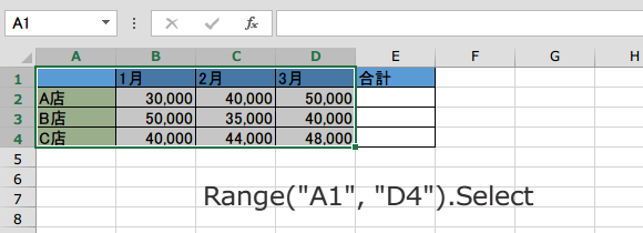 セルの選択には、Rangeオブジェクトを使って
