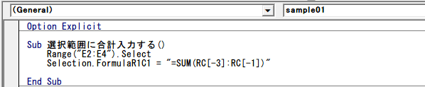 選択範囲に合計入力する FormulaR1C1