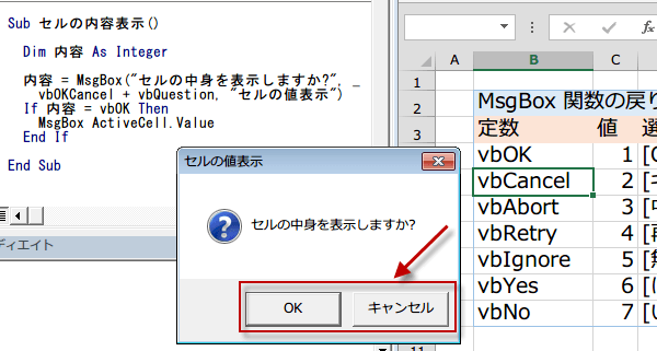 内容 = MsgBox("セルの中身を表示しますか?", _
