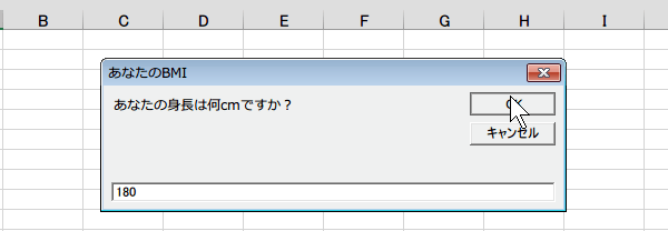 s = InputBox("あなたの身長は何cmですか?", "あなたのBMI")
