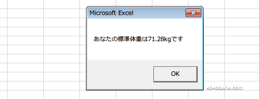 MsgBox ("あなたの標準体重は" & h & "kgです")