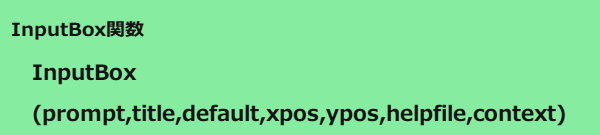 InputBox(”メッセージ”, ”ウィンドウタイトル”) なので、