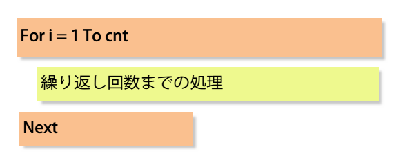 For〜Nextステートメントで、 決められた回数の繰り返しを行うことができます。