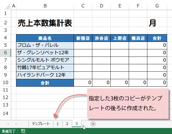 Excelの作業では、よく使う表のひな形のシートを作って、必要枚数コピーするというような作業は日常よくあります。