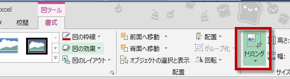 貼り付けた画像ダブルクリックすると、リボンに図ツールが現れます。トリミングを選択して周りの余白を小さくします。
