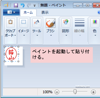 ペイントを起動したら、Excel上にある印鑑用のトリミング画像をコピーして貼り付けます。