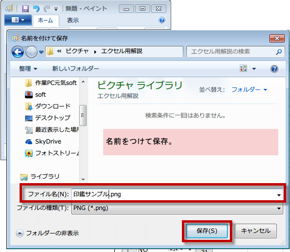 Excelで使うために、印鑑画像を保存
