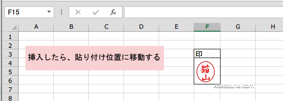 印鑑画像を挿入したら、貼り付け位置に移動させます。