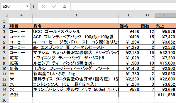 セルに数式が入力されている場合、セルには計算結果が表示されています。