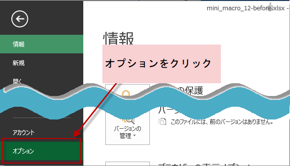 「オプション」を選択すると、「Excelのオプション」ダイアログが表示されます