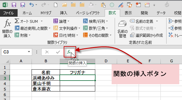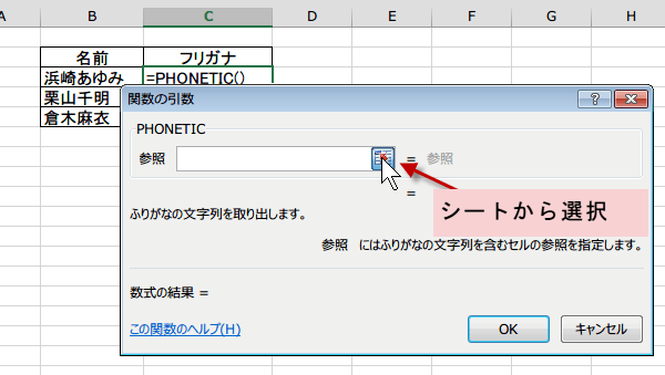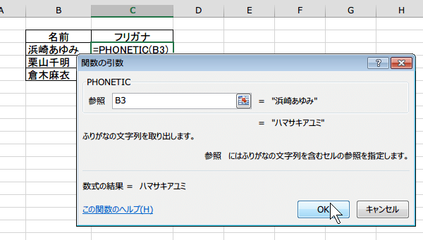 フリガナを取り出すPHONETIC関数 (2013〜2003)