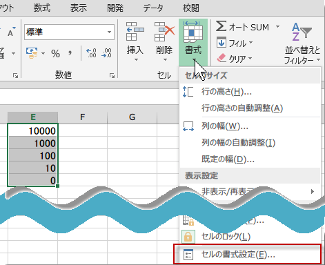 セルの書式設定を選びます。