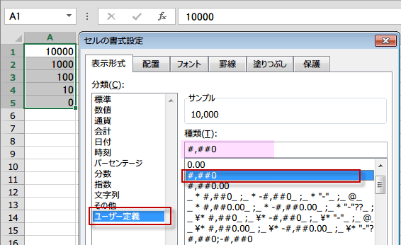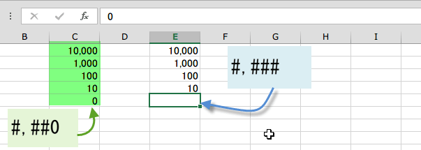 左側は、ゼロ表示で、#,##0