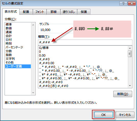 そこで、3桁ごとに「,」(カンマ)の設定をする際に、ゼロの表示、非表示を一緒に設定してしまうのです。