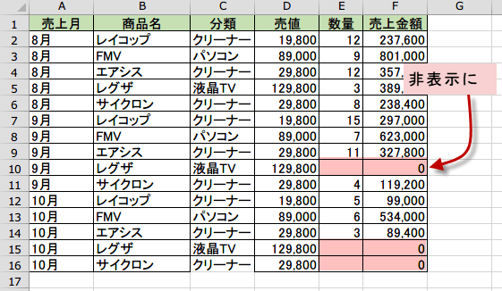 売上の集計や、テストの成績表などで、未入力部分がある時に、0を表示したくない場合があります。