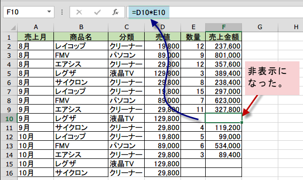 すると、今まで計算式が入力されていて、0と表示されていたセルの0が非表示になりました。