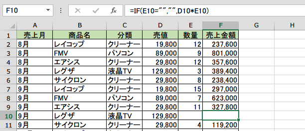 0を非表示にする設定をIF関数をつかってやってみましょう。