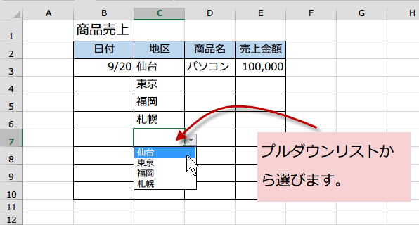 これからは、ドロップダウンリスト(プルダウンリスト)を使ってササッと片付けましょう。