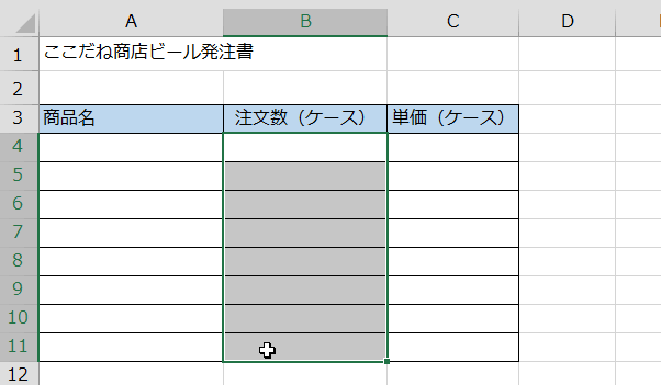 今回は、ケース注文の際の入力できる範囲を設定して10位下にします。