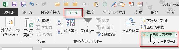 「データ」メニューの「入力規制」をクリックし