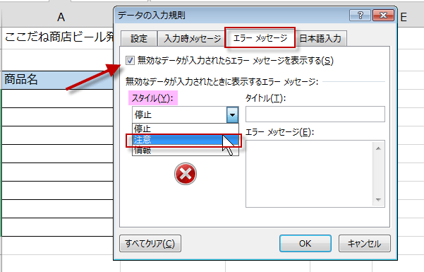 Excel セルに入力できるデータを制限する
