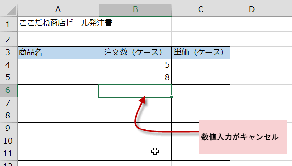 キャンセルをクリックすると、数値入力がキャンセルされます。
