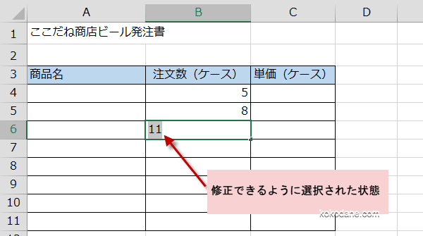 いいえをクリックすると、入力した数値が選択された状態になり修正ができます。