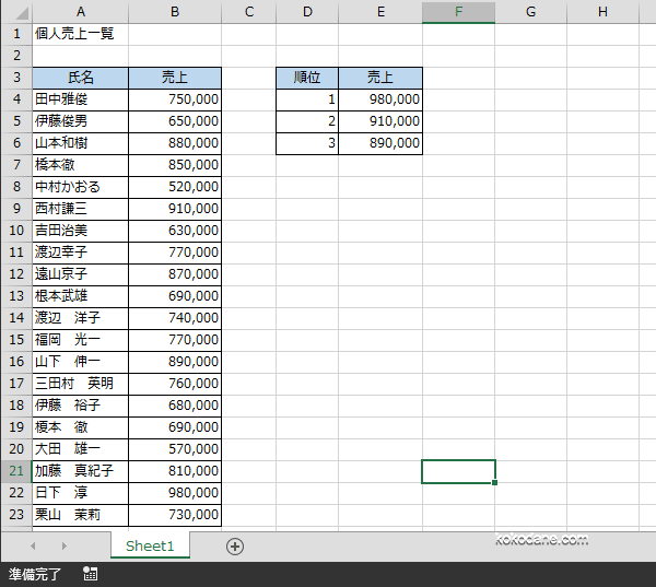 個人別売上表があります。