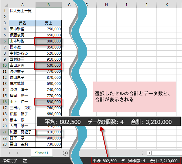 そのうちの数人の売上合計と平均をしりたい、などという時に便利です。