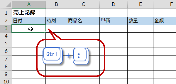 Ctrl キーと「;(セミコロン)」キーを同時にクリックします。