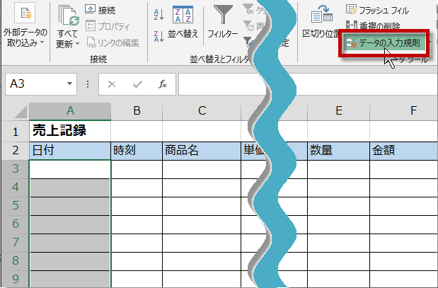 データの入力規則ダイアログが表示されたら、入力メッセージタブをクリックします。