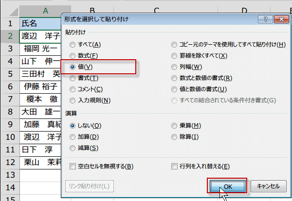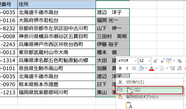 次にやることは、D列をコピーして、値の貼り付けを行います。