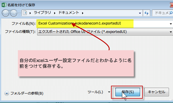 名前をつけて保存画面が開くので、わかりやすい名前をつけて、設定ファイルを保存します。