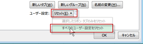 リボンのカスタマイズ ユーザー設定をリセットするには