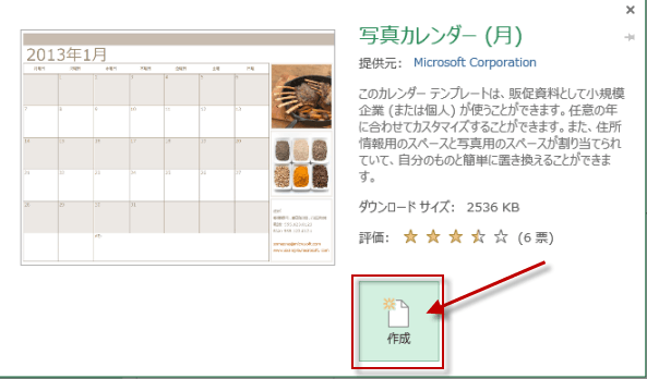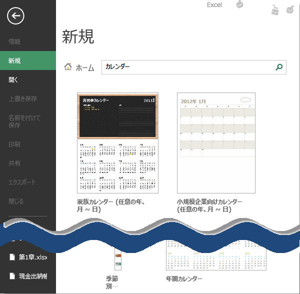 2013になって、「テンプレートを探す」手間が簡単になったので、テンプレートでカレンダーを作成してみることにしました。