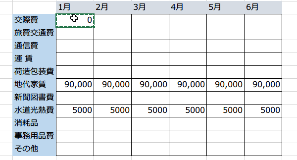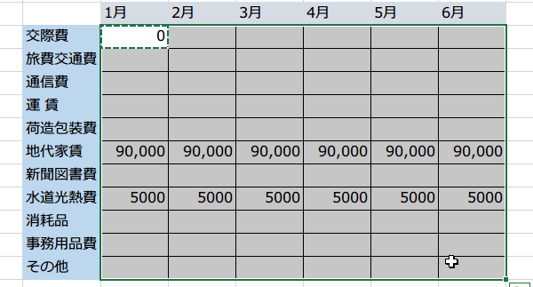 OKをクリックすると、すべての空欄に0が入力されました。