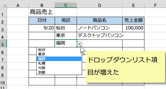 ドロップダウンリストのリスト項目を追加したり編集したい ケース1