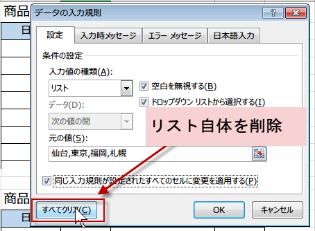 入力規則ダイアログボックスの下にあるすべてクリアボタンをクリックします。