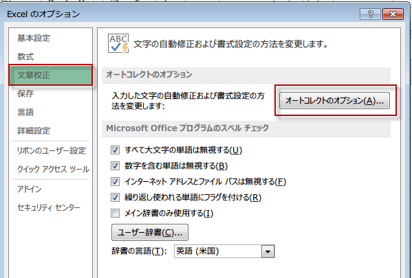 オートコレクトのオプションボタンをクリックします。