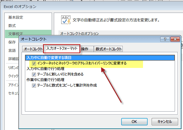 Excel2013で自動的にハイパーリンクを設定しない