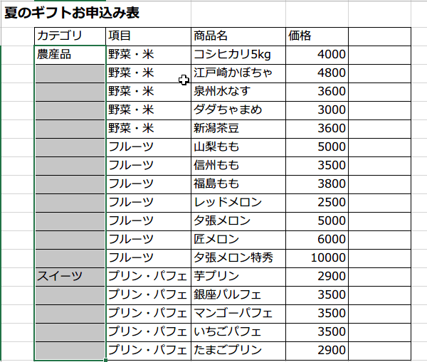 カテゴリ名の最初だけが表示されて、同じカテゴリは非表示になりました。