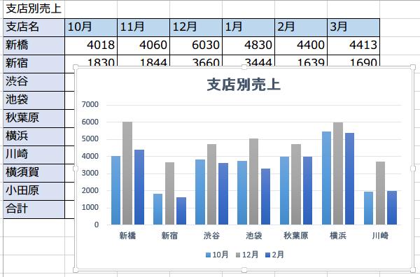 チェックをはずした項目が非表示になり、グラフがすっきりしました。