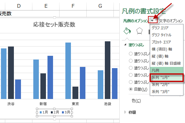 凡例のオプションの▼をクリックして、凡例1月を選択します。