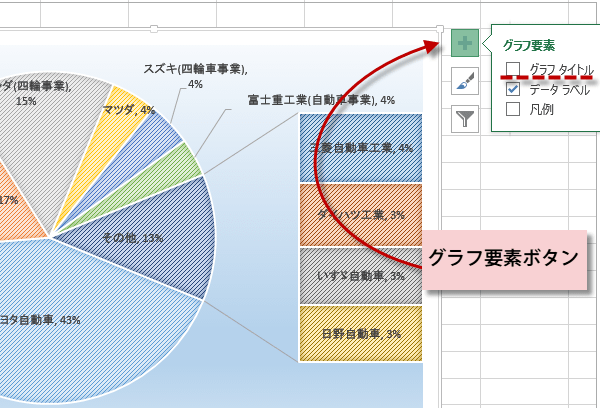 グラフ要素ボタンをクリックしてグラフタイトルにチェックを入れ表示させましょう。